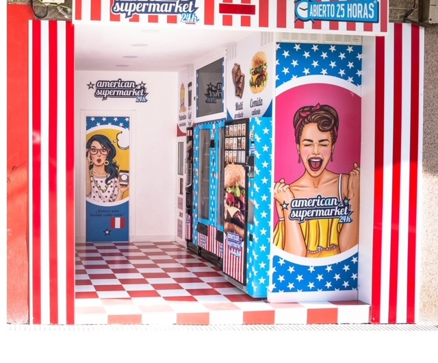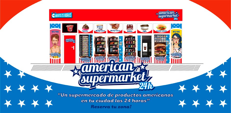 AMERICAN SUPERMARKET 24h es un supermercado americano con las primeras marcas de comida y bebida de Estados Unidos, abierto para ti las 24 horas del día los 365 días del año a través de nuestras máquinas expendedoras.