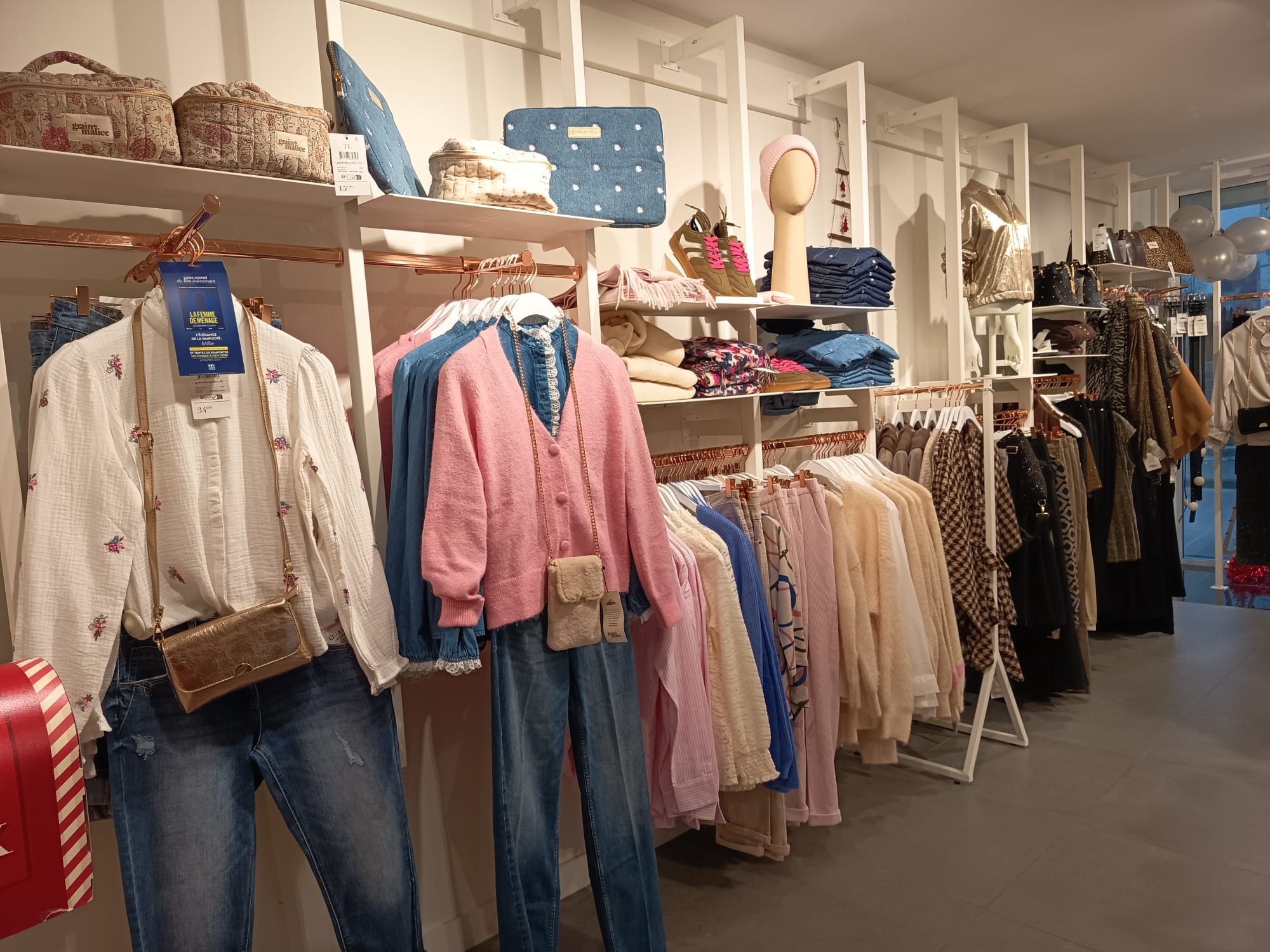 Grain de Malice es una marca de prêt-à-porter femenino con un posicionamiento de cercanía, orientada a mujeres activas de 35 años o más, que buscan una moda femenina, cómoda, favorecedora y adaptada a distintas siluetas y morfologías. La enseña combina producto, consejo y trato personal, apoyándose en una propuesta comercial basada en la proximidad, la relación de complicidad con la clienta y un entorno de compra agradable y accesible.