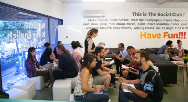 Además de la inmersión en el idioma mediante las clases presenciales y el curso online, en What's Up! tienes un Social Club con actividades diarias de conversación “Only in English” (Speed meeting, Drama Club, Cinema Night, Quiz Show, Mad About Music, Debate Club, Games, Writing Corner, Breaking News, etc.). Hay actividades diarias y podrás asistir a todas las que desees, sin límite.